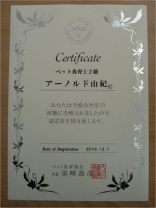 11月に2日間お休みをいただき、ペット食育士2級認定講座を受講させていただきました。